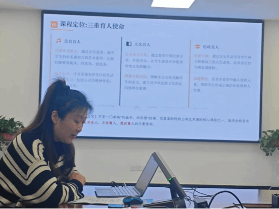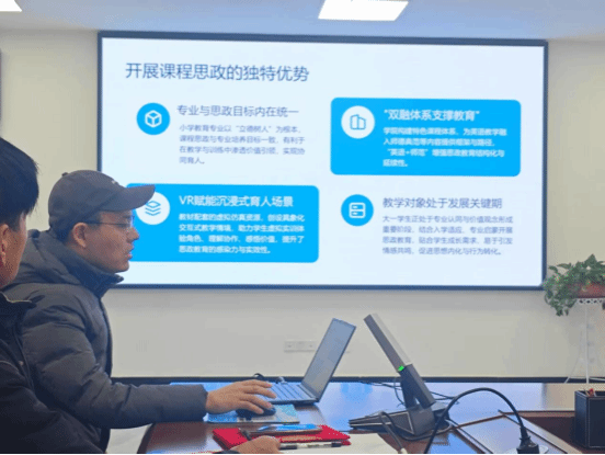 本次活动以“融思政于课堂,育新人于实践”为主题,旨在通过经验交流、成果检阅与示范引领,进一步凝聚公共课教学团队的育人共识,提升课程思政建设的规范化与科学化水平。在课程思政案例展示环节,夏庆安、张立峰、魏娜三位老师先后以“日行一善”、“VR赋能,英师共育:小教新生从“新”出发,向“德”而行”、“经典咏流传之中国风流行歌曲赏析”为题,分享了各自在体育、大学英语、美育三门课程思政实践中的探索与思考,提出了诸多具有针对性与可操作性的思路建议,生动诠释了如何将德育元素有机融入课堂教学,实现了知识传授与价值引领的同频共振。
